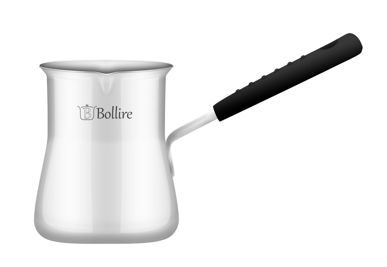 Турка "Bollire" 0.55л. Об'єм - 550 мл. Виготовлена із харчової нержавіючої сталі 18/10, рівномірно розподіляє тепло, утримує температуру.